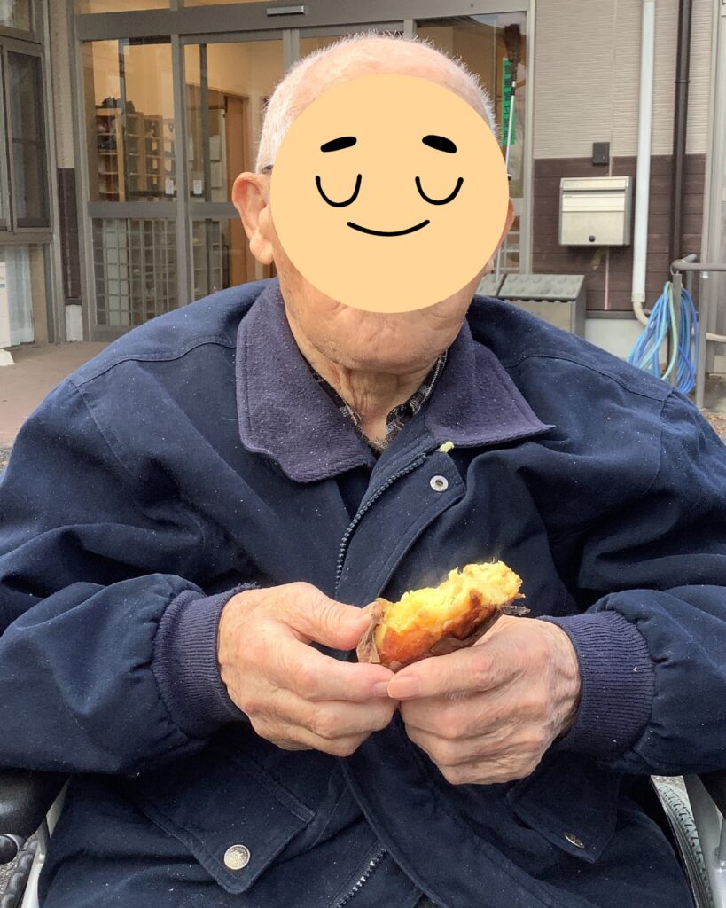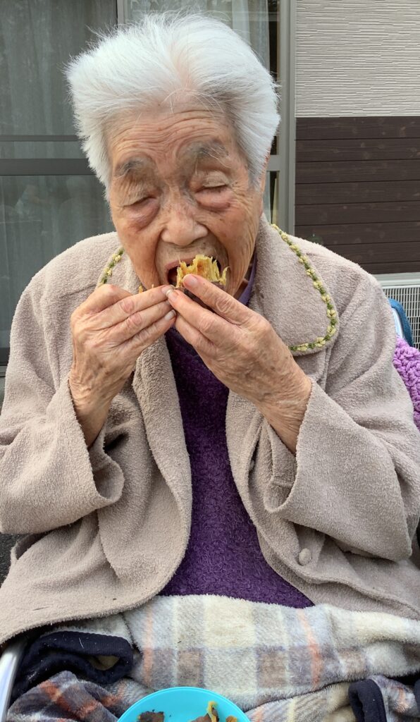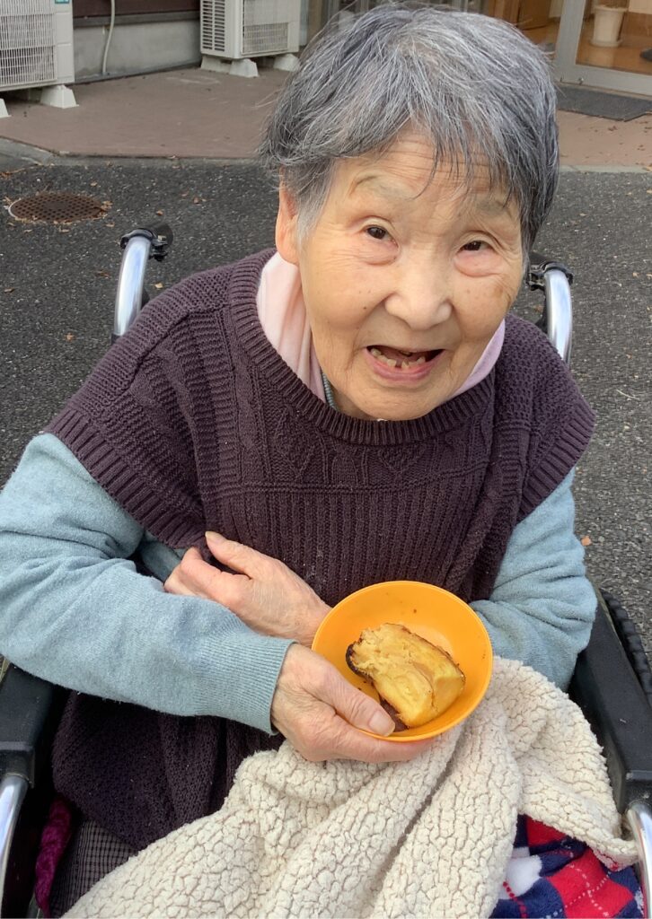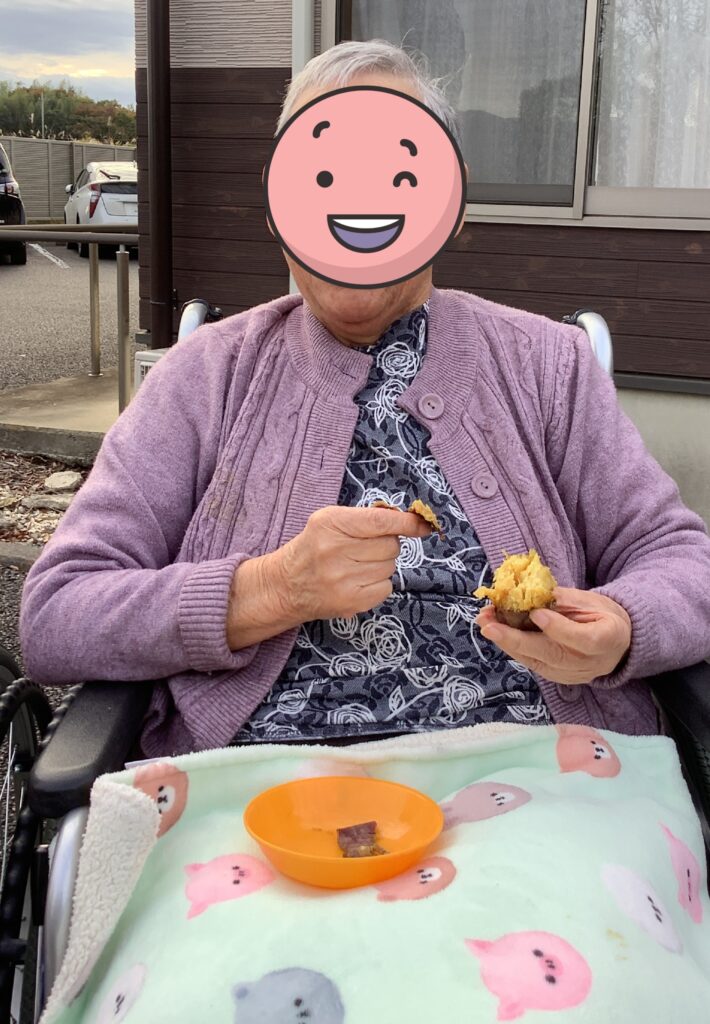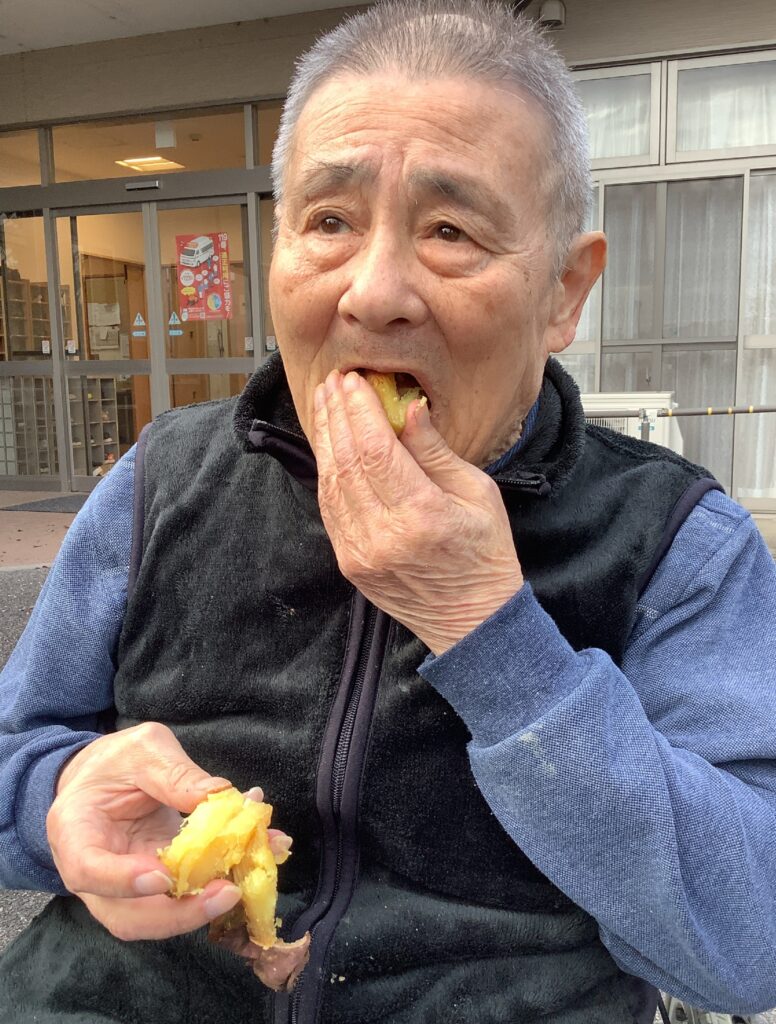 普段、食欲があまりない方も、焼き芋は喜んで食べて下さいました🎵まずは1/3のサイズを食べ、もう少し食べるかお聞きすると手を伸ばされる方が多く、職員も焼き甲斐のある焼き芋大会となりました。