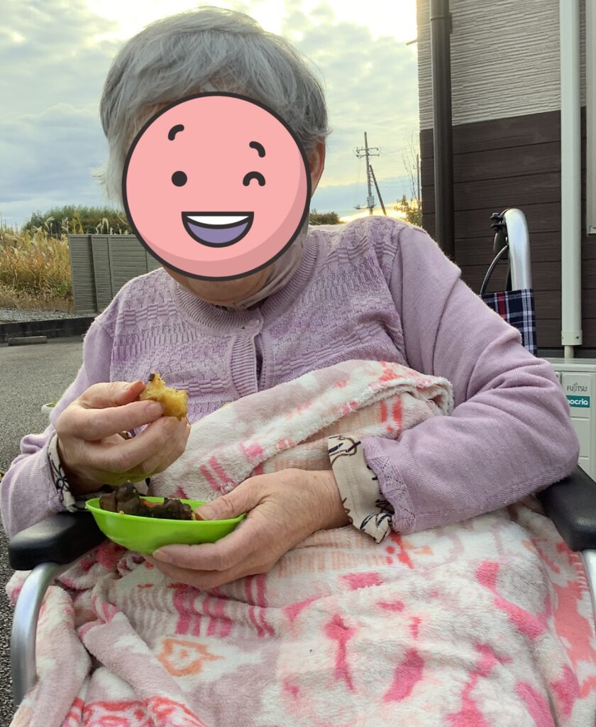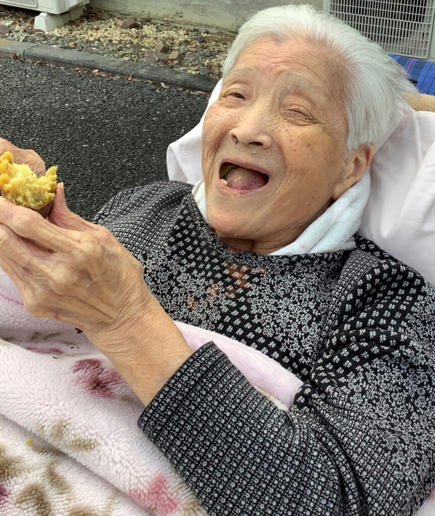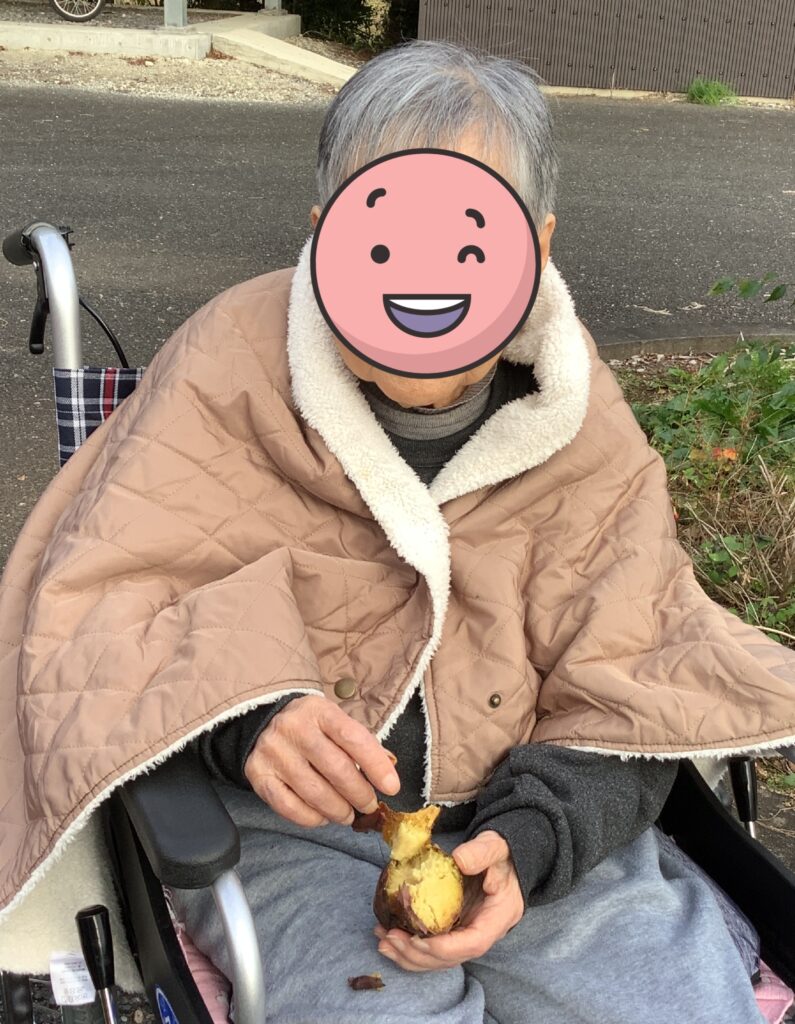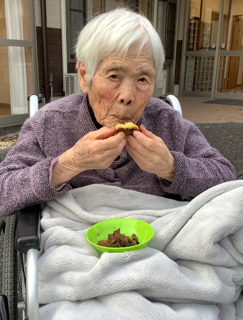 普段、食欲があまりない方も、焼き芋は喜んで食べて下さいました🎵まずは1/3のサイズを食べ、もう少し食べるかお聞きすると手を伸ばされる方が多く、職員も焼き甲斐のある焼き芋大会となりました。