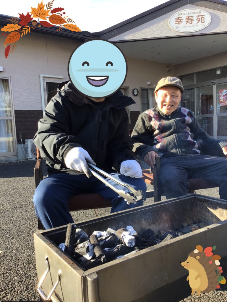 寒がり外に出ない方も多かったものの、皆の為に火の番をし、じっくりと焼き上げて下さいました!!