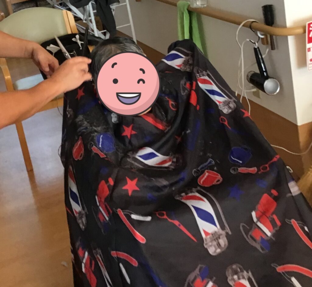 こちらは最近の日常のご様子です。偶数月に理美容サービスがあり、希望される方が散髪します。今回も皆様きれいにセットしていただきました✂