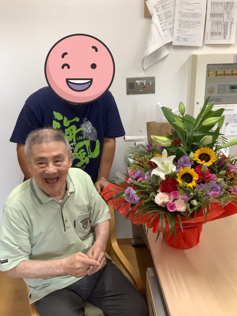 先日お誕生日を迎えられたご入所者ですが、息子様から豪華な生花💐のプレゼントがあり大変喜ばれておりました。